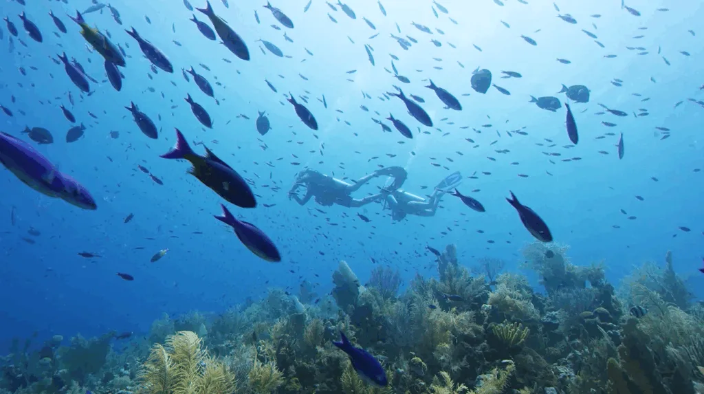 在蔚藍海洋中自在遨遊,隨著氣泡啵啵上升,細細品味每一次潛入的寧靜與美好,讓心靈與大海同頻共振,享受專屬於你的深藍時光。
